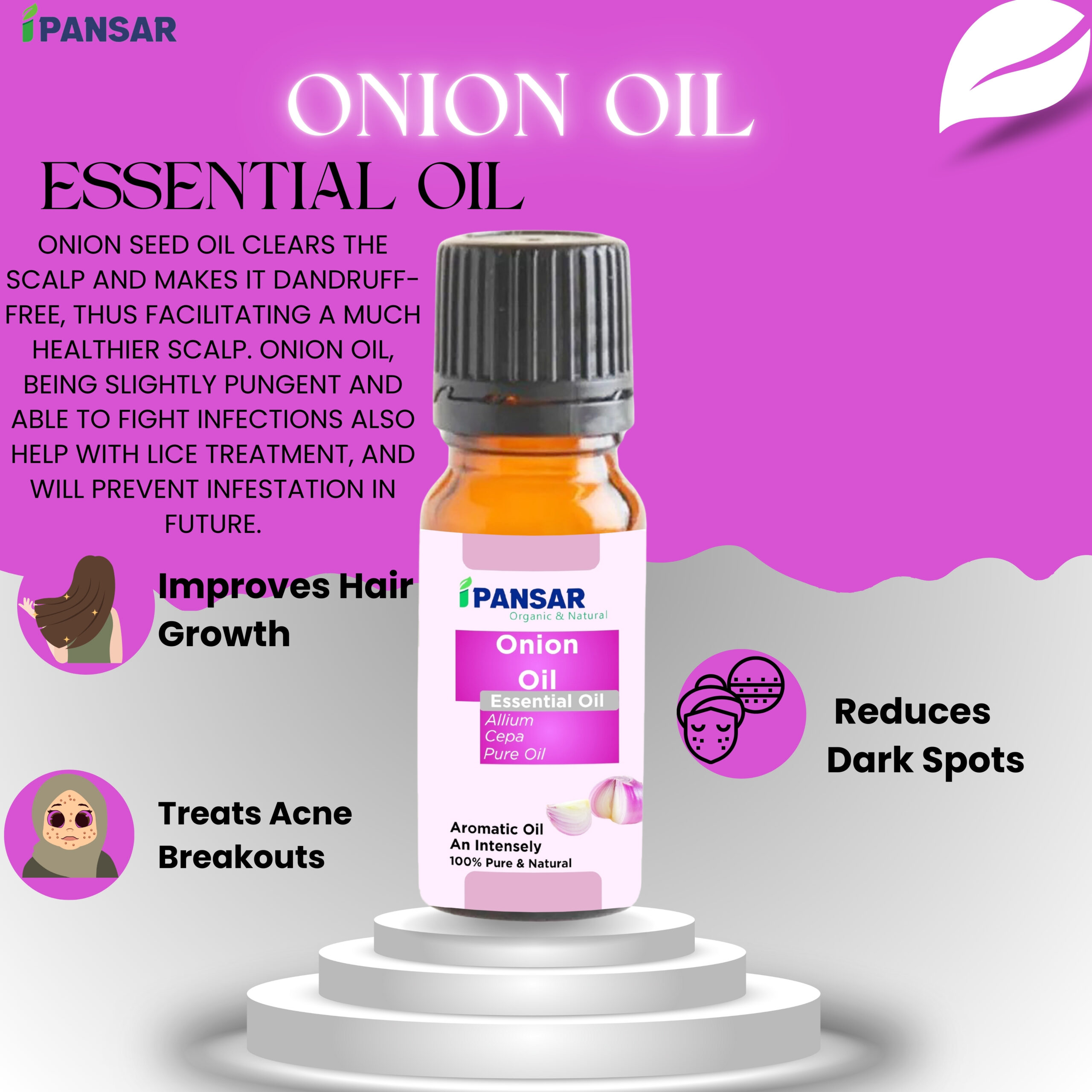 It also has natural antioxidants, reduces dandruff and scalp infections, and serves as a DIY scalp treatment. Onion oil, infused with essential nutrients, offers convenient application, reduces odor concerns, provides deep conditioning, and minimizes hair fall.